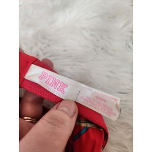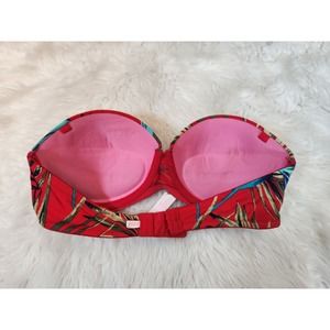 Pink Victoria's Secret Women's Red Printed Strapless Padded Push Up Bikini Top Size 32C