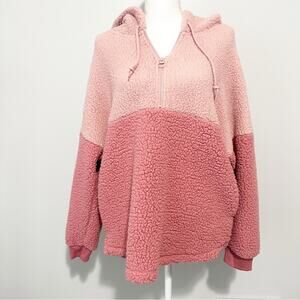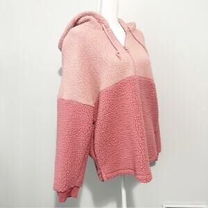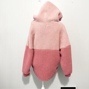 Pink Victoria’s Secret fleece oversized hooded sweater pullover NWT size medium side pockets two toned pink