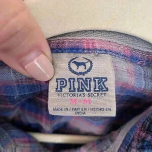 Pink Victoria’s Secret plaid button down long sleeve shirt size M