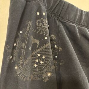 Pink Victoria’s Secret size, large sweatpants. Wide leg. Have rhinestones on front and back. Has pockets. Drawstring waistband. Thick material no issues. All sales final.