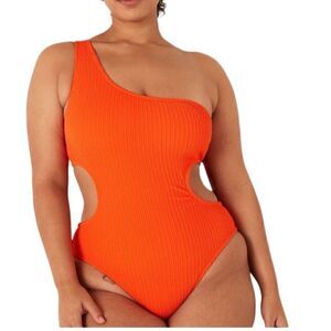 Pink Victoria’s Secret swimsuit one piece Orange Crinkle One Shoulder medium