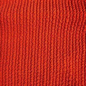 Crinkle fabric. Removable padding. High leg. Cutouts at side. Minimal coverage: lots of cheek peek.