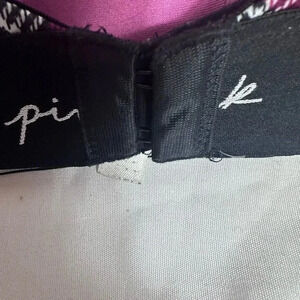 Pink Victoria’s Secret bra. Wear everywhere Lightly lined. Wireless. Black and red plaid print. Two hook closure. Adjustable straps. Love pink on black band. Excellent preowned condition. Steamed and sanitized. Size 34DD.