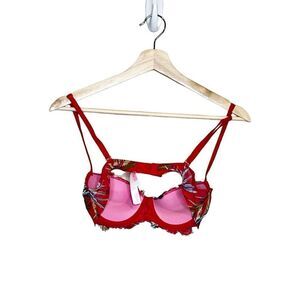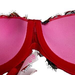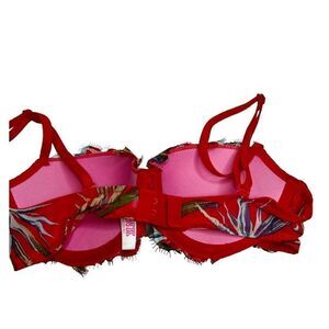 Pink Victoria’s Secret red date night tropical lace print padded push up bra siz