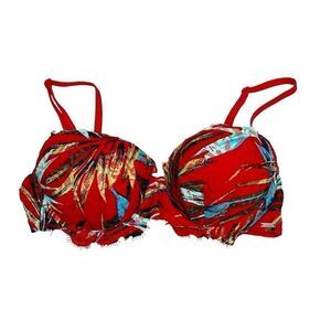Pink Victoria’s Secret red date night tropical lace print padded push up bra size 34B. Good condition.
