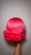 Elevate your style with this exquisite pink wig, showcasing soft waves that elegantly curl under at the ends. The medium length offers a touch of vintage charm, perfect for adding a glamorous flair to any look.