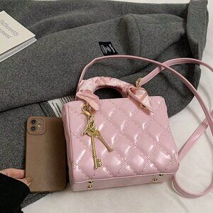 Pink Vintage Women's Diamond Grid Crossbody Handbag