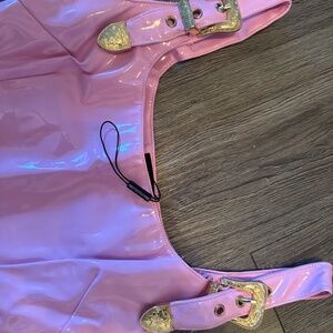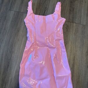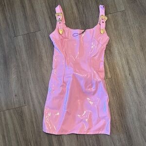 PrettyLittleThing pink vinyl buckle strap detail sleeveless bodycon dress