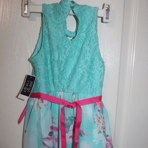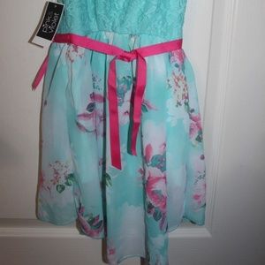 Pink & Violet Dress Aqua Lace Floral sleeveless pink grosgrain ribbon sz XS NEW…