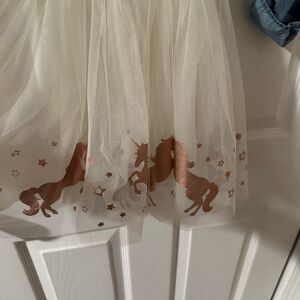 denim style dress top/ lined bottom of skirt with unicorns, has belt loops but I do not have a belt