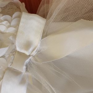 Satin bow in front and ties in back
