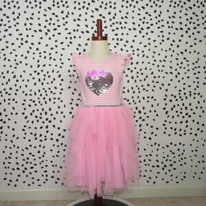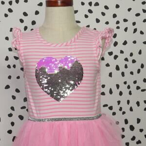 Pink & Violet Striped Sequin Heart Tulle Layered Girls Dress