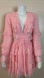 Tags for exposure: cutout pink ruffle fit and flare deep v draped ruffle lace sleeve lace panels
