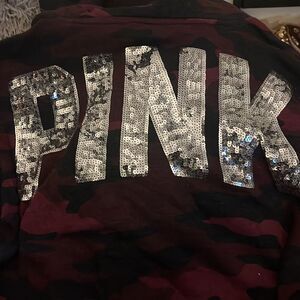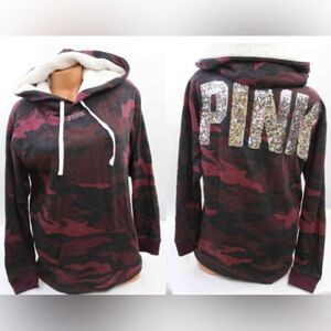 Pink Vs camouflage red bling sequin Sherpa Hoodie hooded sweatshirt jacket Large