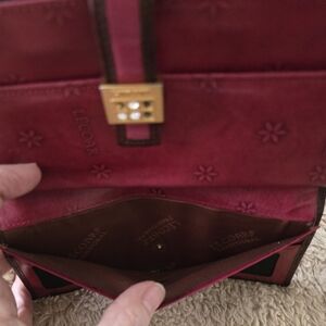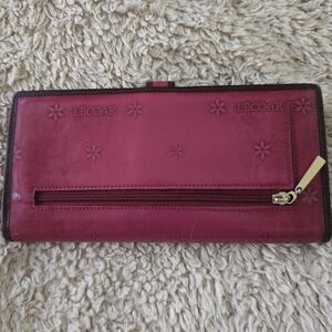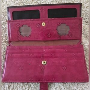 Stylish and elegant, the pink wallet is perfect for organizing your essentials. Its vibrant color adds a pop of style to any outfit. Interior like new, exterior missing a few gems on buckle.