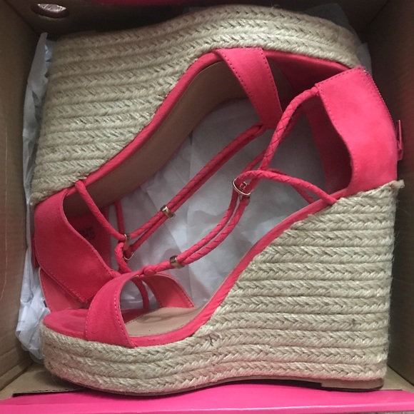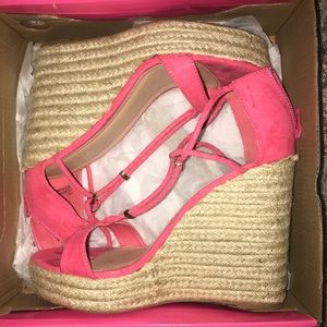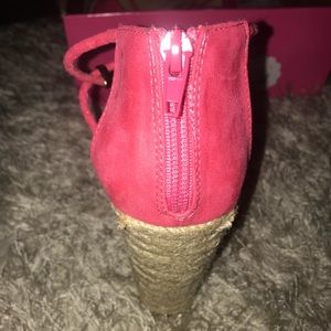 Very cute pink wedges. Only worn once, it’s good condition. It’s has cute design in front & mini zipper in the back.