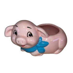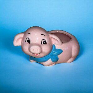 Pink Whimsical Happy Farmhouse Anthropomorphic Smiling Baby Pig Vintage Planter