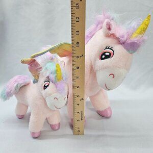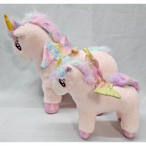 Pink Whimsical Unicorn Plush Mom & Baby with Rainbow Sparkle Wings