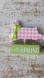 Celebrate Spring’s arrival with the Pink & White Buffalo Check Bunny on Hello Spring Sitter. This decorative wooden figurine features a leaping bunny with a pink and white gingham finish. The bunny has a green gingham bow and sits on wooden dowel, which is supported by a green wooden block reading “Hello Spring” in white lettering. Display this charming bunny freestanding to add a cheerful pastel pop to a tray, table, or shelf during Spring. Measures 4.25” high by 5.5” wide by 1” deep.