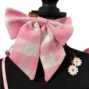 This is a cute Pink & White Checkered Barbie Dress Costume with Bow Clip, Belt & Earrings in a size L. Purchased from Spirit Halloween for $50. Maybe a youth large as it fits like a small. Stretchy back with side zipper. Please see photos for measurements. Only worn once. Non-smoking home. Willing to bundle! Make me an offer!