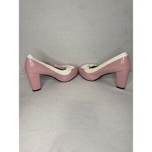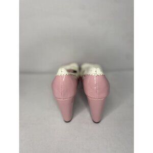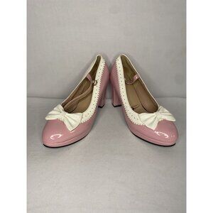 These elegant high heel pumps showcase a charming pink and white color combination with a delightful bow detail at the toe. The patent leather finish adds a touch of sophistication, while the sturdy heel ensures comfortable wear throughout the day. A stylish choice for those seeking a blend of classic design and modern flair.