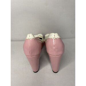 Pink & White Chunky High Heel Mary Jane Pumps With Bow Detail