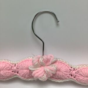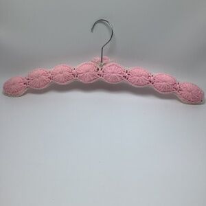 Pink & White Crocheted Covered Wooden Clothes Hanger Vintage
