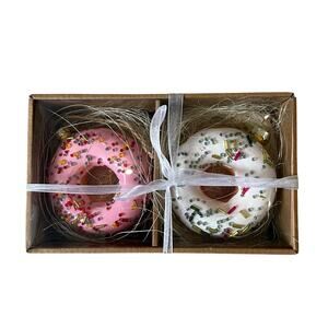 Pink & White Frosted Donut With Sprinkles Glass Christmas Ornaments Set of 2 NEW
