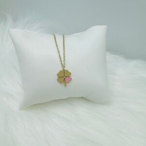Pink & White Heart Four-Leaf Clover Pendant Necklace in Gold Bundle