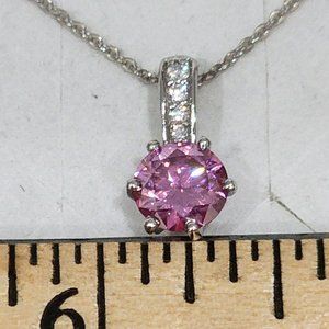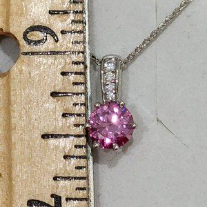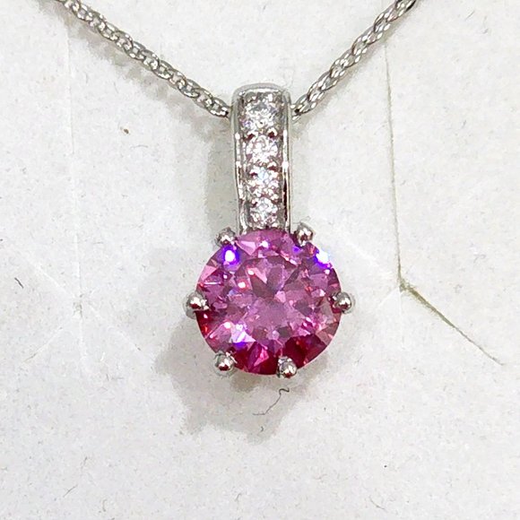 Pink & White Moissanite pendant necklace 7mm round VS quality in Plat/925SS 20"