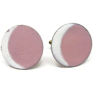 Pink White Moon Enamel Copper Cufflinks Round Shirt Accessories Wedding Vintage