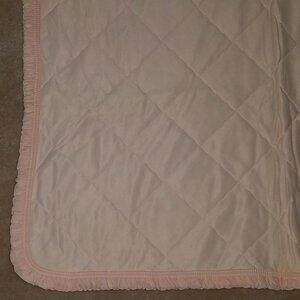 Pink White Quilted Comforter Crib Baby Girl Blanket Ruffled Edges