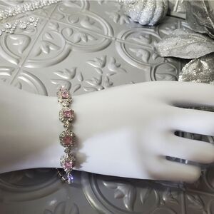 Pink & White Topaz Tennis Bracelet on Platinum - Stamped PT 950