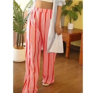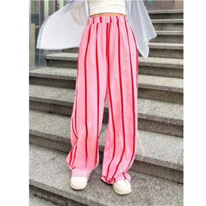 Pink Wide Trousers with Red Stripes Elastic Waist Flowy and Light