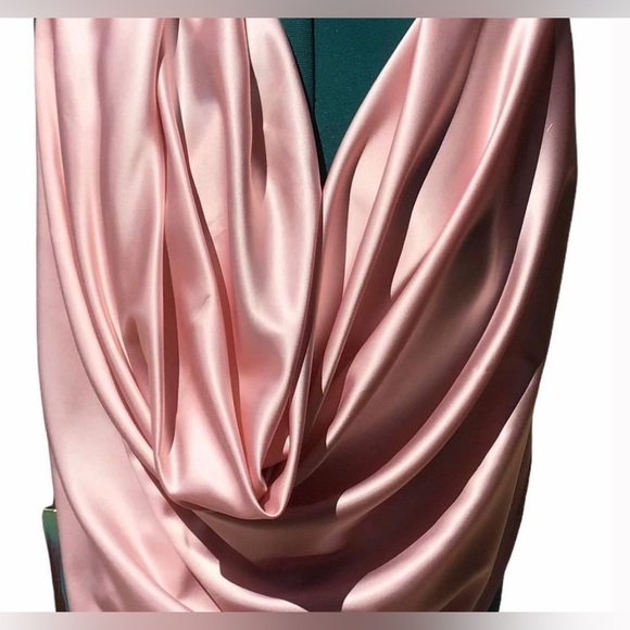 Soft, baby pink! Photo taken in direct morning sunlight. Generous 42X42”size. Silky Poly/charmeuse blend. Large enough to be worn ‘cowboy wild rag’ style. We use non-fraying fabrics, our edges are serged only once due to this fact. This is purposeful and not to be viewed as a deficit. Hand cut and sewn by us. Made in our shop in the USA! The second photo is to show a style option only! You will receive the rag in the first photo.