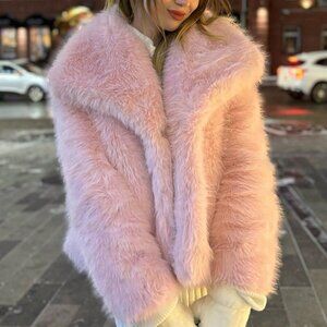 Pink Women's Casual Luxury Coat Warm Faux Fur Coat
