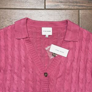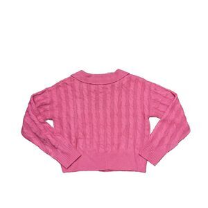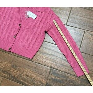 Pink Womens Cropped Cable Knit Cardigan Button-Up Barbiecore Rose Sz M NWT
