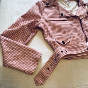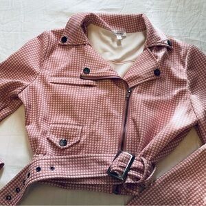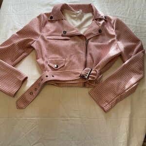 Cute polyester pink and white cropped jacket. Has a bit of stretch. Good condition