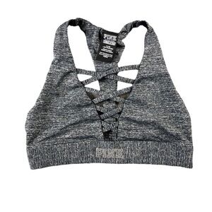 Pink Womens Medium Gray Cut Out Ultimate Unlined Racer Back Sports Bra