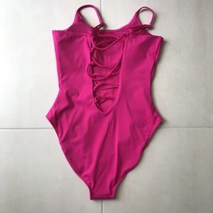 Stylish and vibrant pink one piece swimsuit perfect for beach days. Enjoy a comfortable fit and chic design.