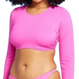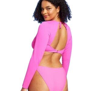Pink Women's Open Back Rashgaurd Long Sleeve Swim Top - Wild Fable - XXS (00)