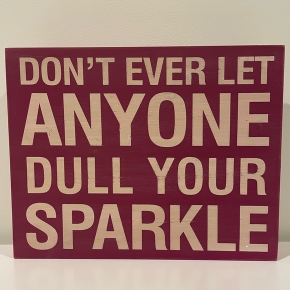This pink wooden sign has the option to be hung or stand on its on display. It is 11.5x9.5. In fabulous condition no marks or wear.