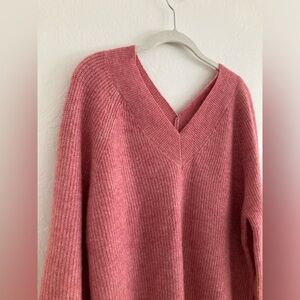 Pink Wool Blend Knit Sweater V Neck Oversized Boxy by Primark Size Large
