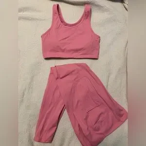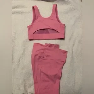 Adorable workout set in a bubblegum pink! Very comfy, padded sports bra, cut out back, high waisted, pockets in the leggings. Bought from Pinklily, brand is Mono B.