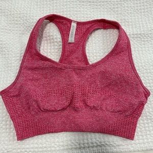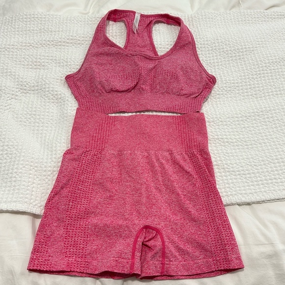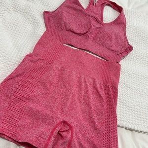 biker shorts and sports bra set. pink. size large. very good used condition. only worn a few times. sports bra is padded. biker shorts are high waisted and have a 3-4” inseam.