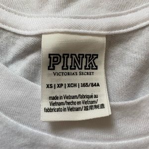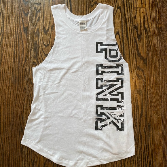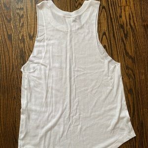 White and blank workout top with low cut sides (purchased that way I didn’t cut it myself). Never worn before perfect condition. Slightly long. Size XS
