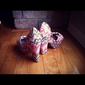 Pink & Yellow Missoni Print Ankle Strap Platforms