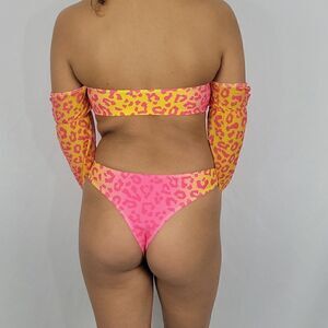 Item: Pink & Yellow Ombre Leopard Off The Shoulder Long Sleeve Bikini Swimsuit 2 Piece