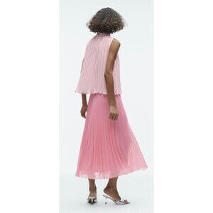 Pink Zara High-Waisted Pleated Flowy Midi Skirt (NWT)