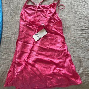 New with tags! Hot pink Zara mini dress never worn! Subtle animal print and criss cross skinny straps in the back.